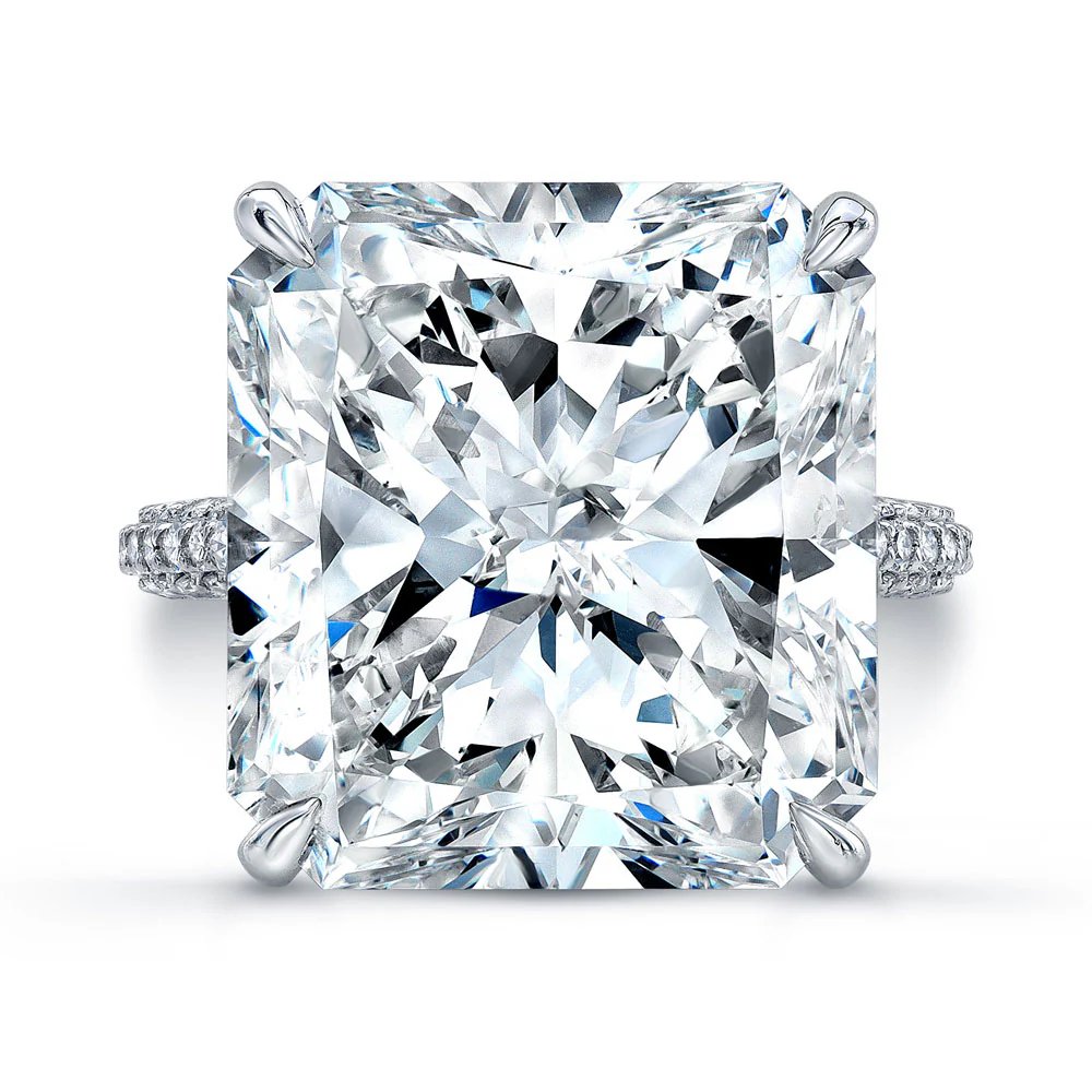 20.21 Carats Radiant Lab-Grown Diamond Ring with Pave Band