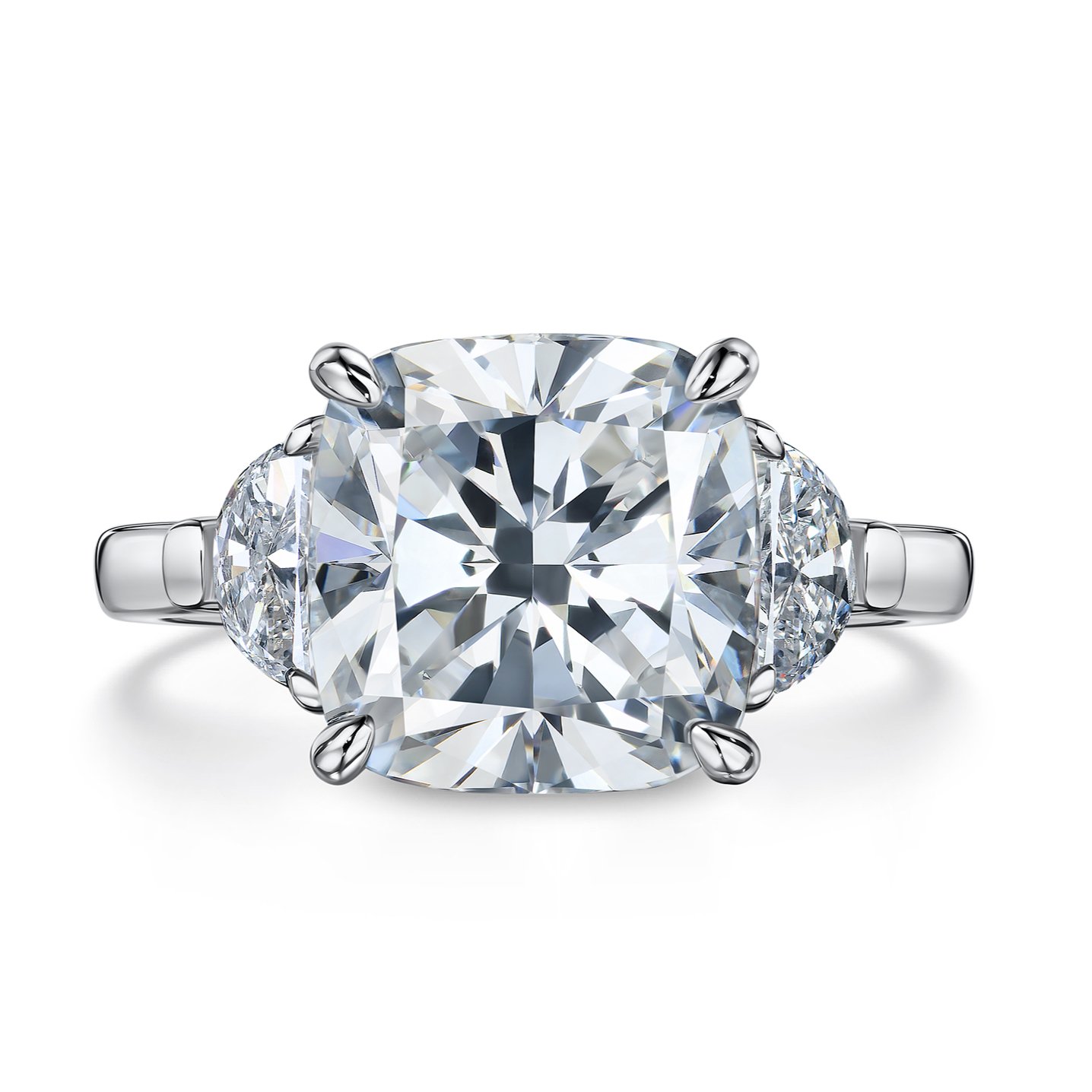 5.5 Carats Cushion Cut and Half-Moon Lab-Grown Engagement Ring