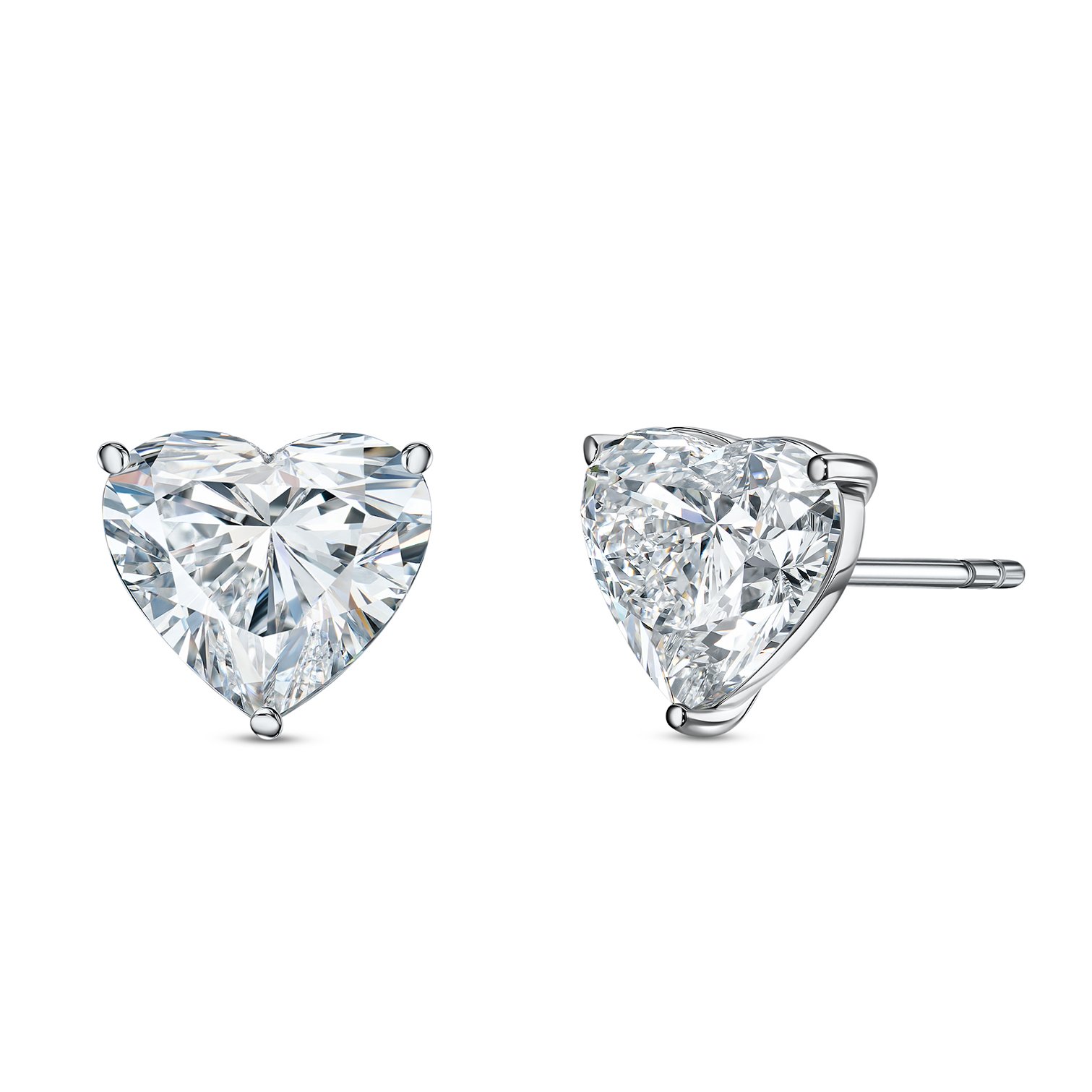 A true symbol of love with our heart shaped 6 carats diamond studs, a testament to exceptional craftsmanship. Each heart-shaped lab-grown diamond is exquisitely set in a three prong platinum setting.