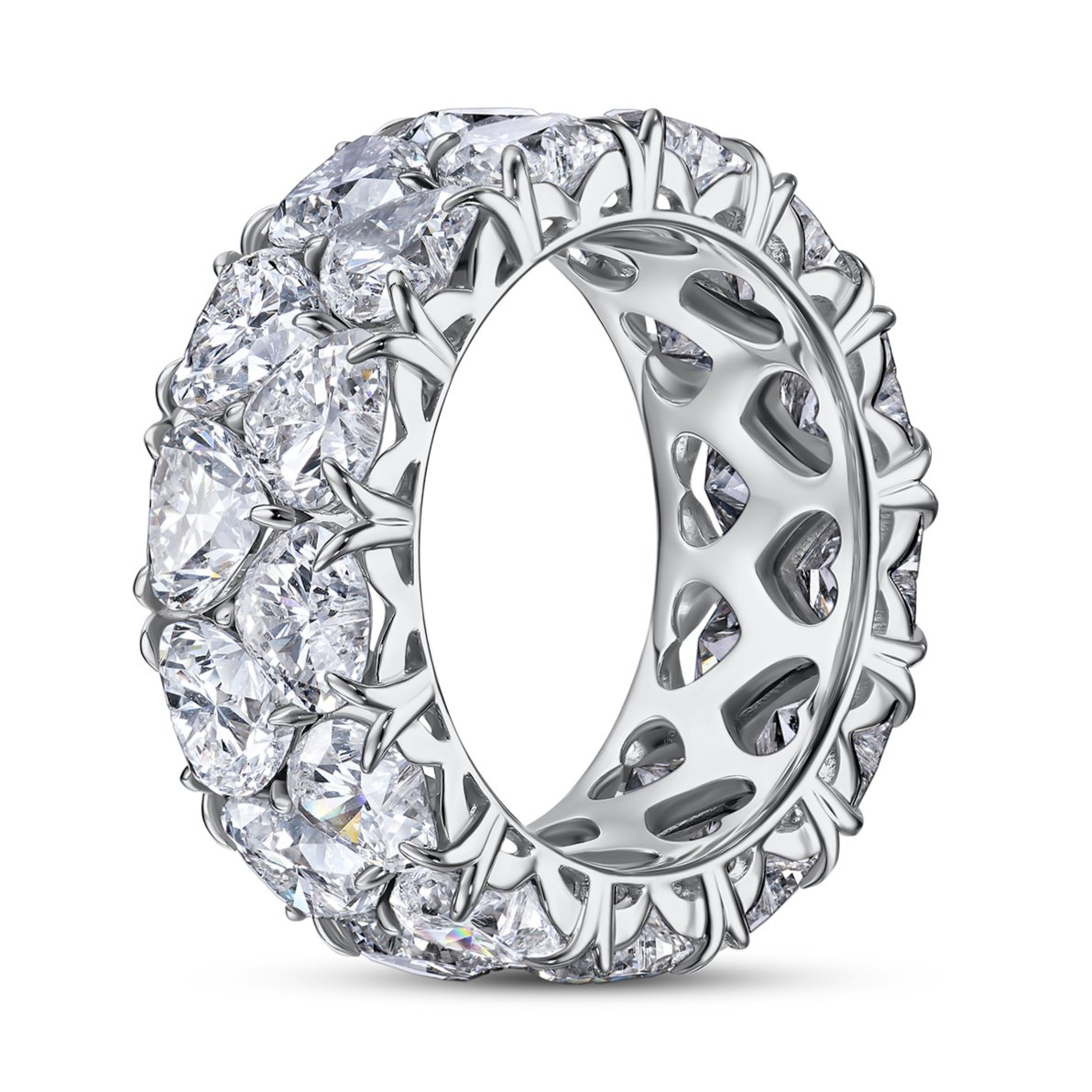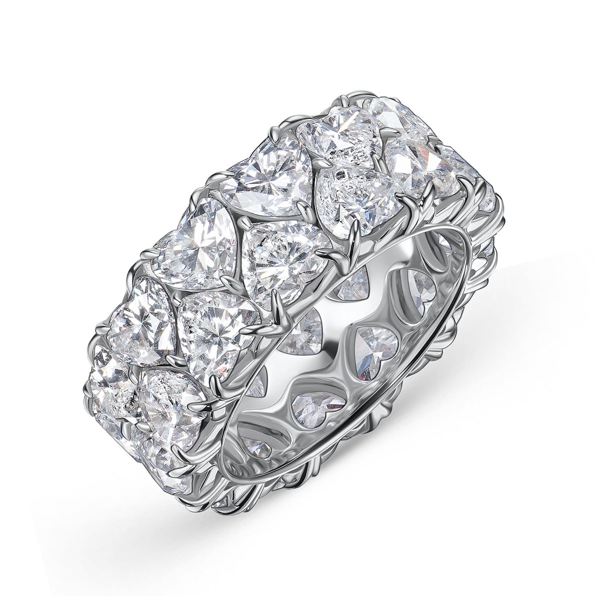 A double row of heart-shaped lab-grown diamonds encircles the finger in an unbroken duet of light. The clean platinum band offers a subtle frame that lets the dual hearts speak with clarity. This eternity ring is a romantic declaration of infinite devotion.