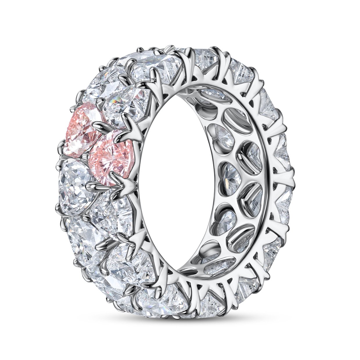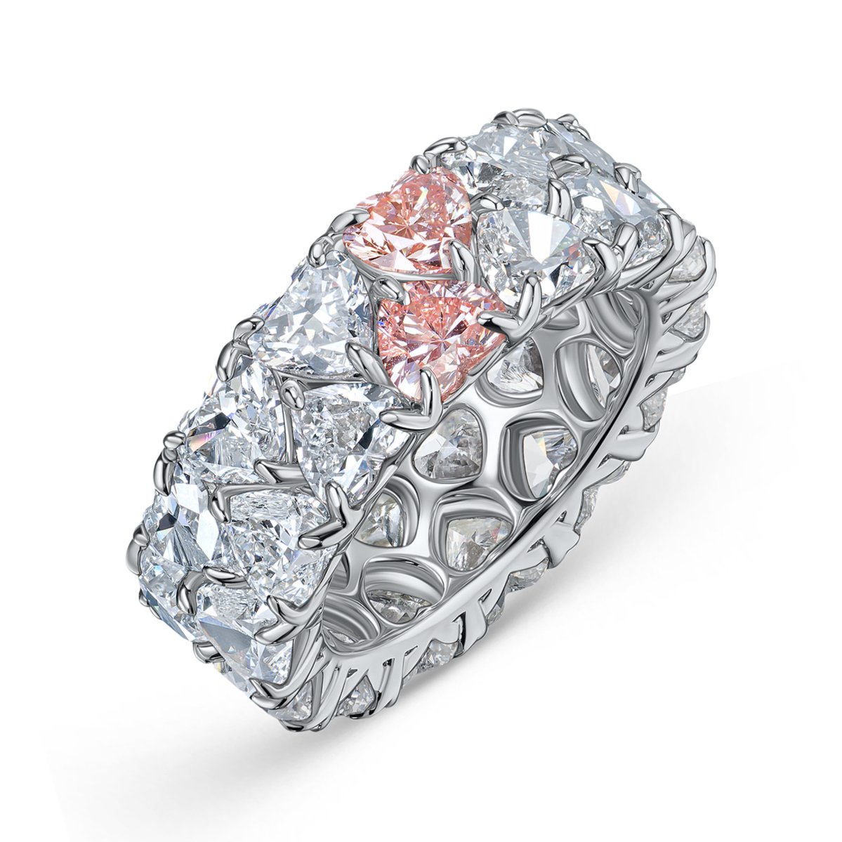 Double Row White and Pink Heart Shape Lab-Grown Diamonds Eeternity Band
