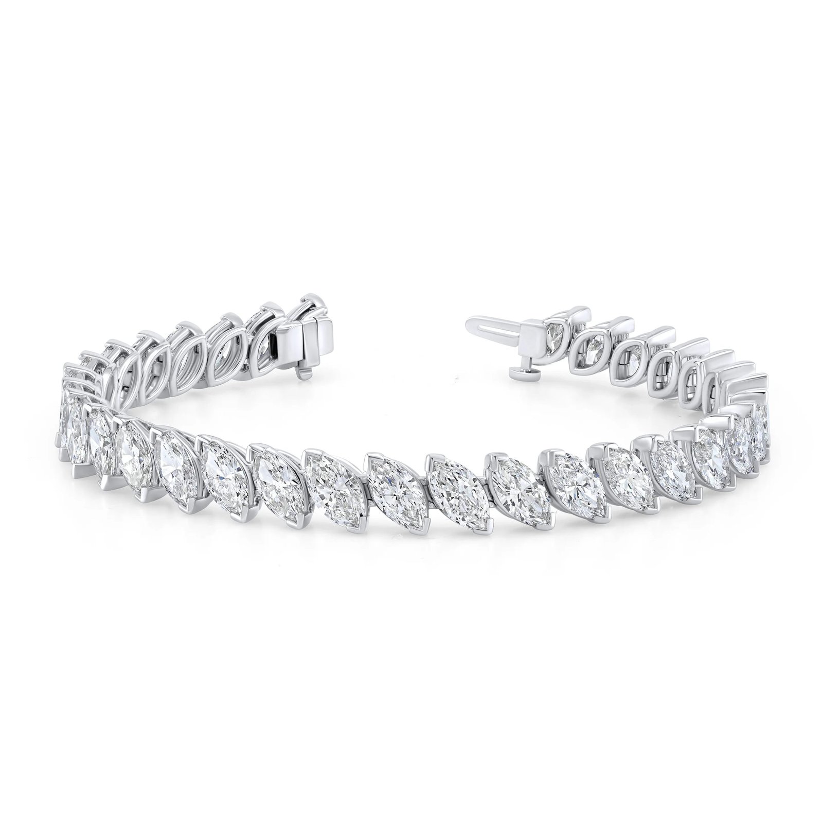 Elevate your style with the Marquise Tilted Diamond Bracelet. Set in 18k white gold, the bracelet features over 17 carats of dazzling marquise cut lab-grown diamonds, creating a sophisticated and timeless piece that adds unmatched brilliance to any ensemble.