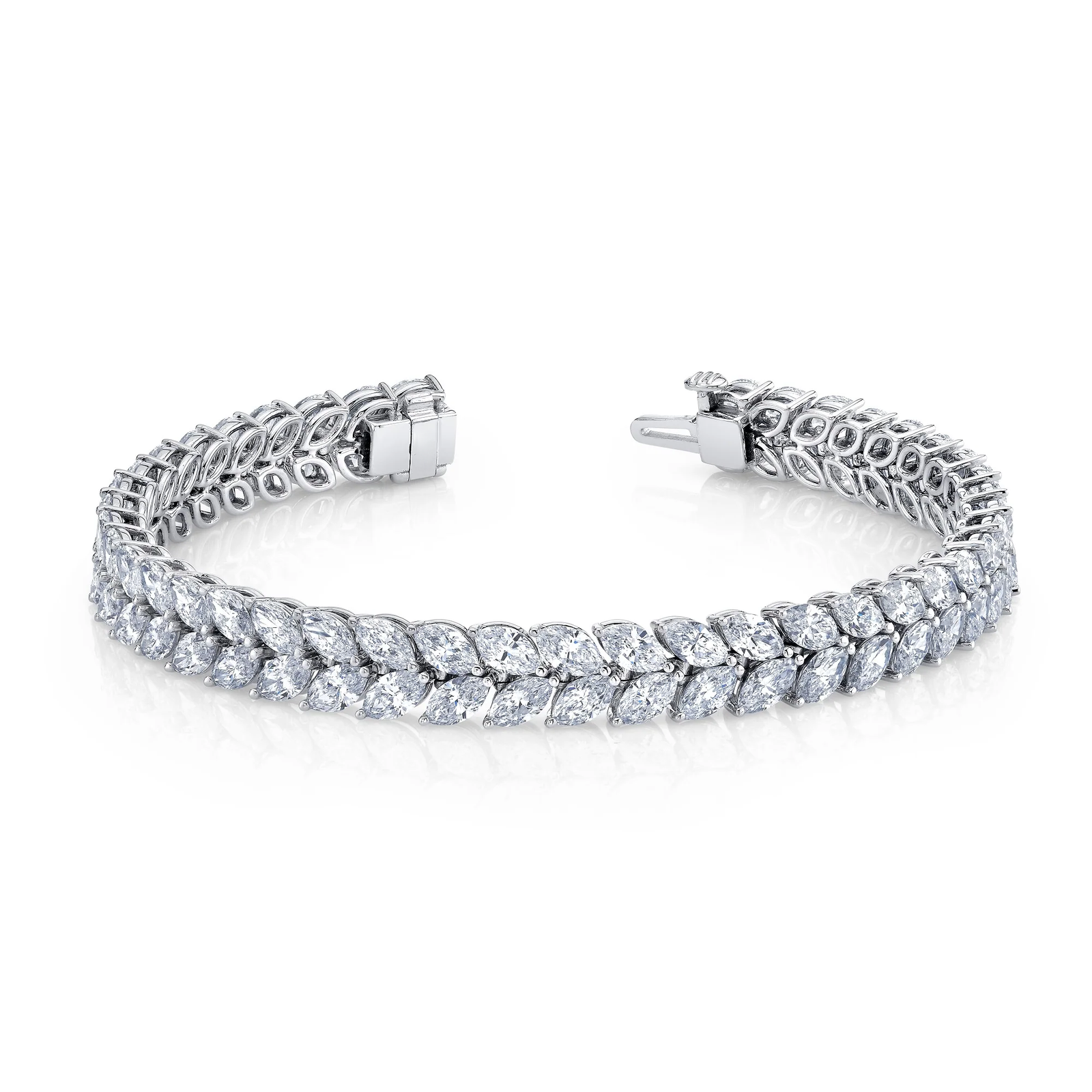 Our exquisite Marquise Cut Double Row Bracelet is crafted from 18k gold. The stunning rows of lab-grown diamonds will add elegance and luxury to any outfit. Available in various metal colors.