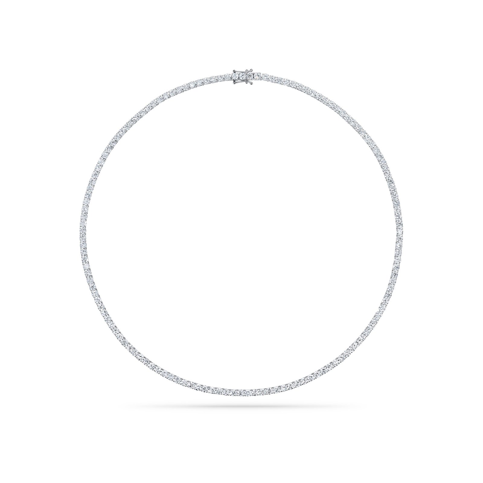 A timeless 3.0 mm Round Cut Lab-Grown Diamonds tennis necklace shimmering with flawless brilliance. Meticulously set in sleek 18K white gold, each diamond radiates refined sophistication. A modern classic designed for effortless elegance and enduring sparkle.
